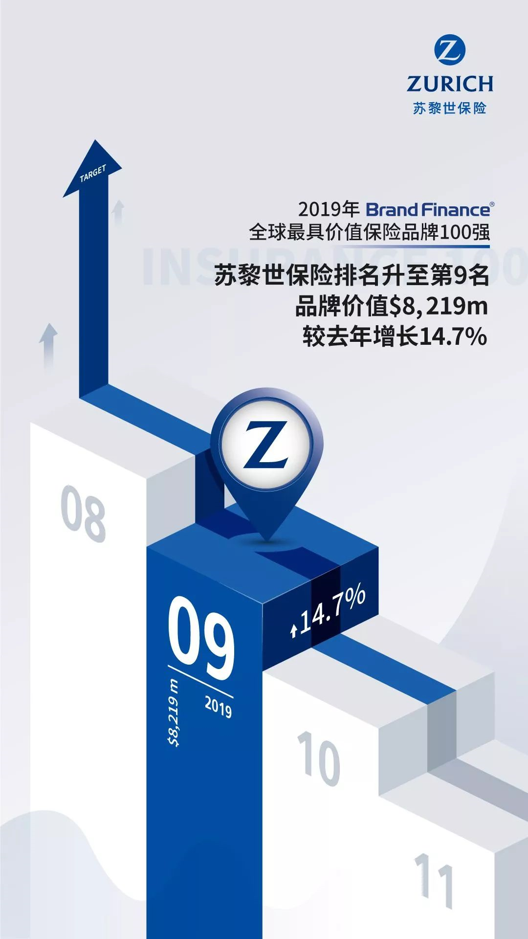 2019全球最具价值保险品牌100强榜单出炉 苏黎世保险品牌价值升至第九名