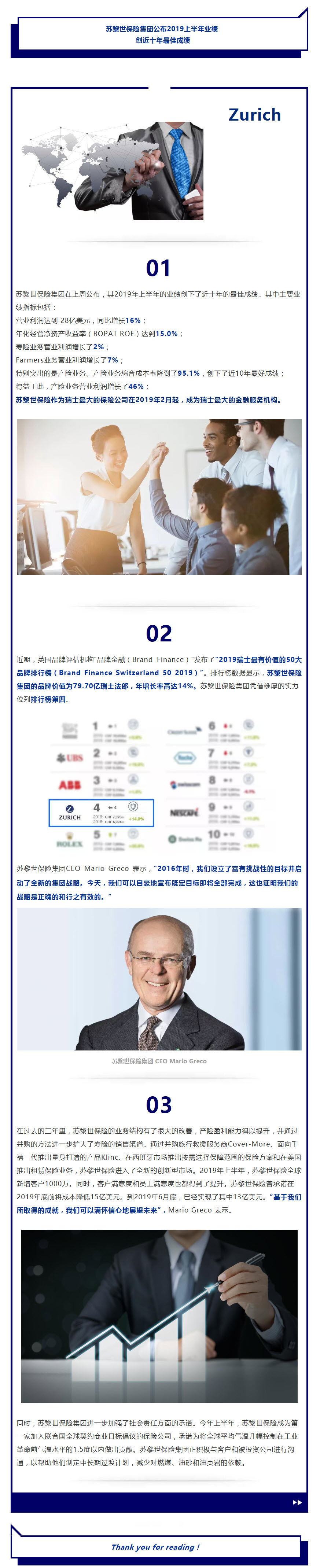 苏黎世保险集团公布2019上半年业绩 创近十年最佳成绩